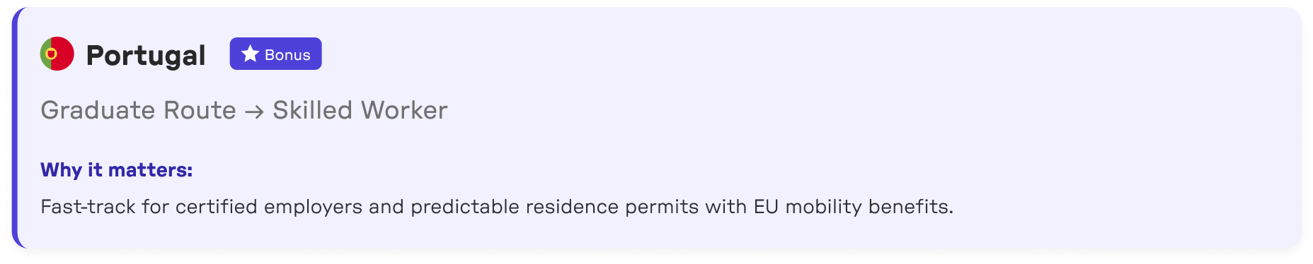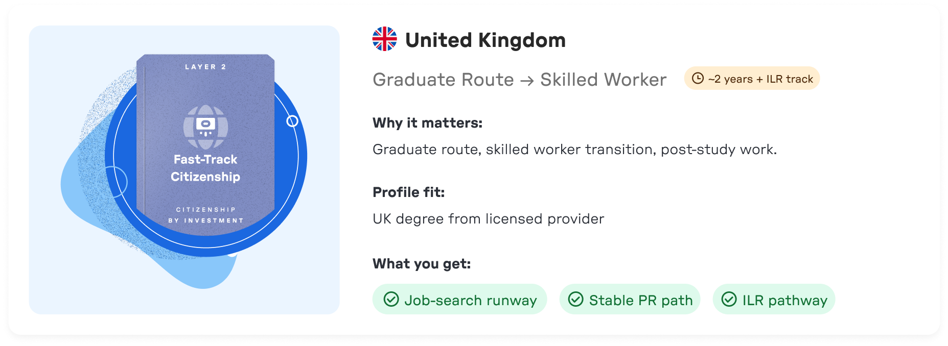 GlobalPassport Passportfolios curate ready-to-execute sets of programs that fit your goals and risk profile. Start with Graduate Magnets to spot post-study pathways and early-career routes in talent-friendly countries.
