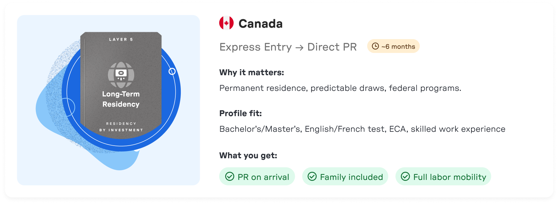 - Assess quickly: Our Mobility Profile maps your eligibility across 40+ programs using your education, experience, language, and family data.