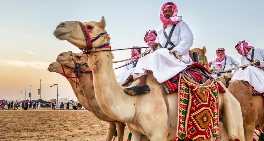 Holds traditional sword dances (Ardah) during national celebrations, featuring drums and poetry